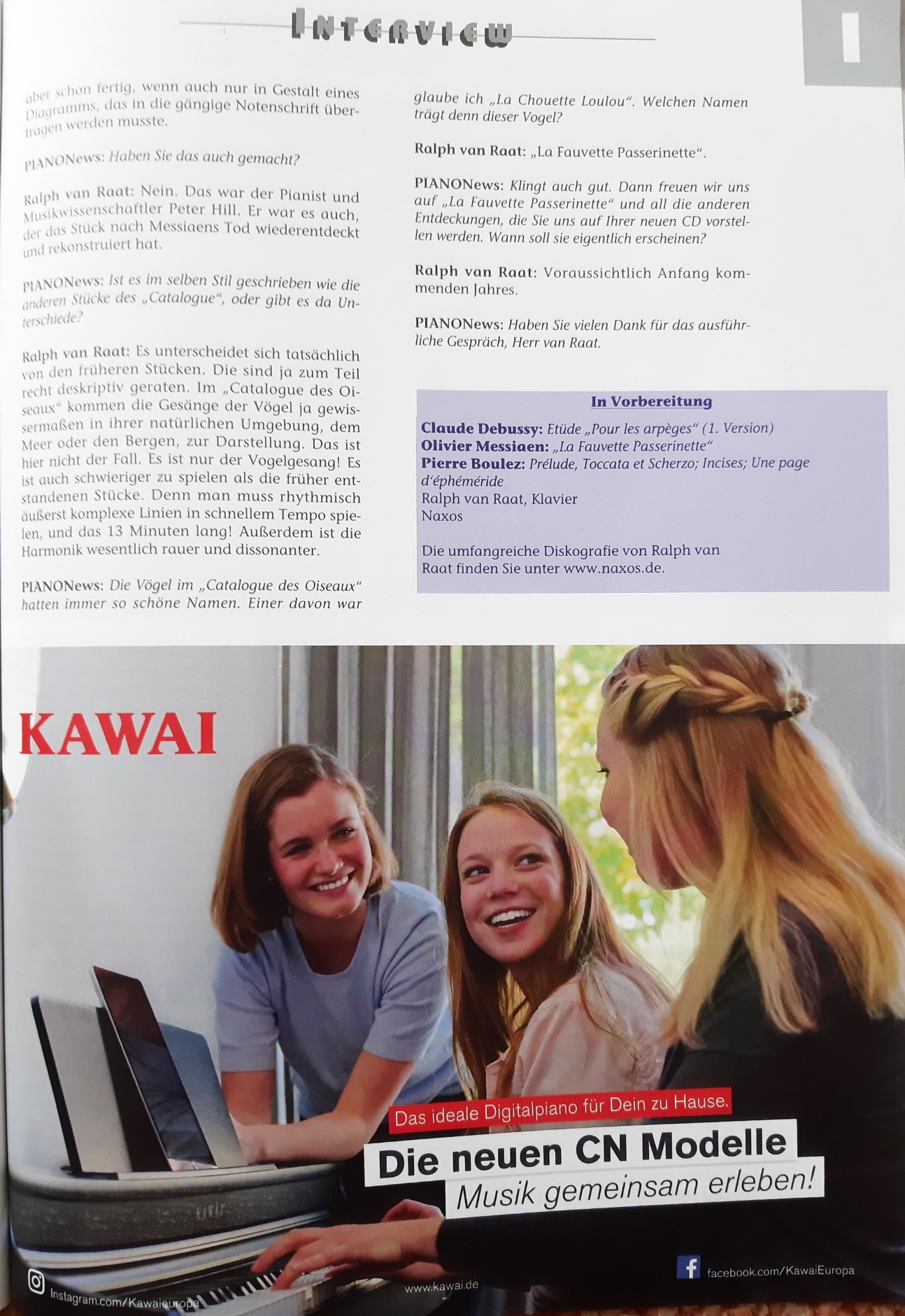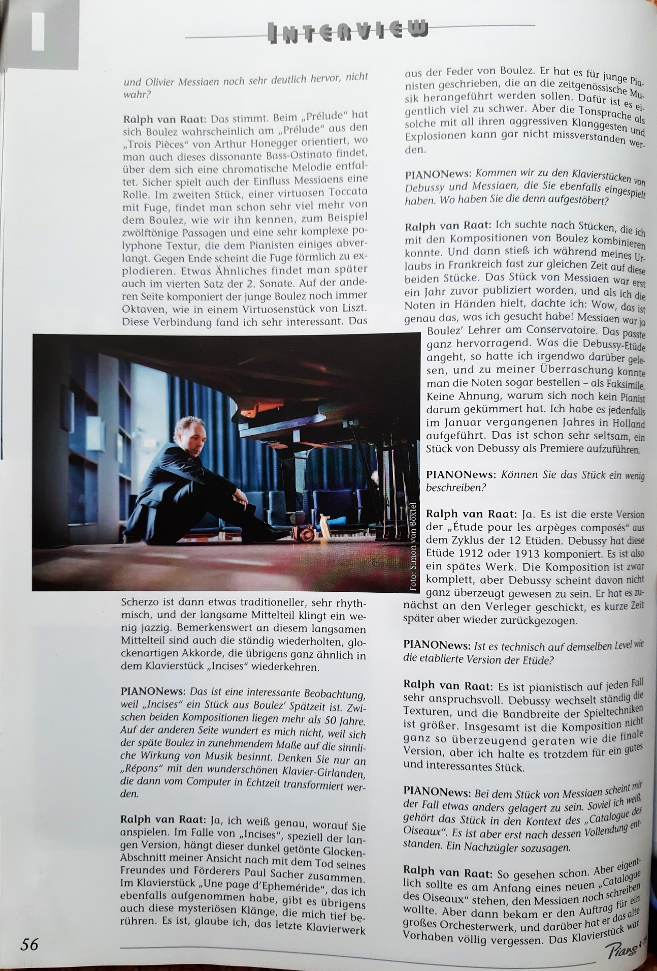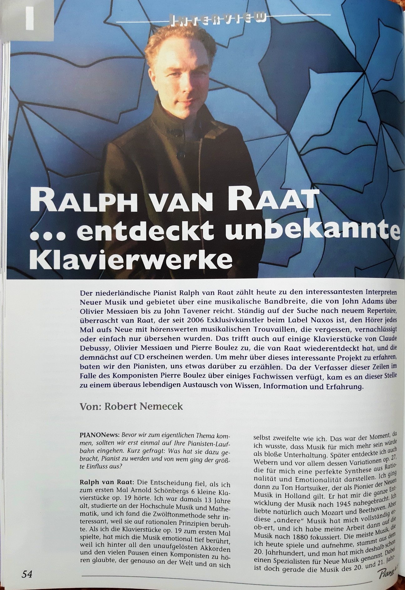 September 25, 2019Ralph is a featured pianist in this month’s PianoNews magazine. The interview was done by Dr. Robert Nemecek, during which they discussed mainly the new upcoming CD on Naxos, with unknown works by Debussy, Ravel, Messiaen and Boulez.