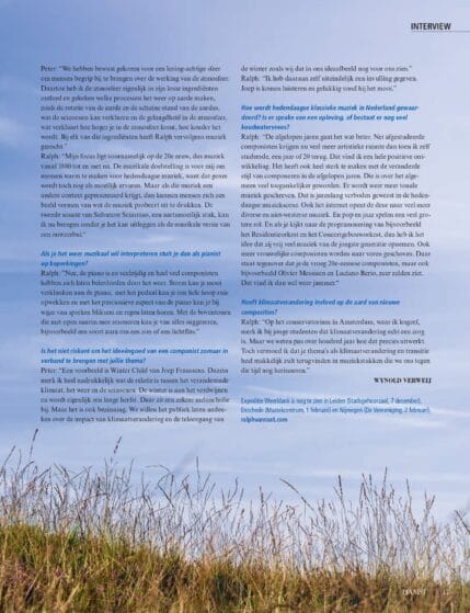 The interview by Wynold Verweij is published in this month’s issue. Ralph and well-known television news weather forecaster Peter Kuipers Munneke talk about their popular and highly demanded theater program, ‘Expeditie Weerklank’, about music and climate. Photo by Heather Pinkham.